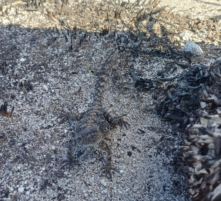 Our parting shot this week is the Koggelmander! Isn't it beautifully camouflaged in our recent burnt veld as it uses ambush tactics in a real life snack attack.