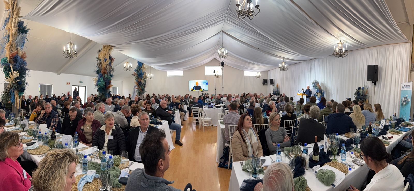 Next, our founder Wilfred Chivell took the stage via a moving video. He recounted how, after losing everything in the late-’90s financial crisis, he borrowed vehicles and scraped together funds to launch boat-based whale watching. Today, Marine Dynamics employs 130 people and sails a fleet of eight vessels. His heartfelt thanks to everyone who believed in him left not a dry eye in the crowd.