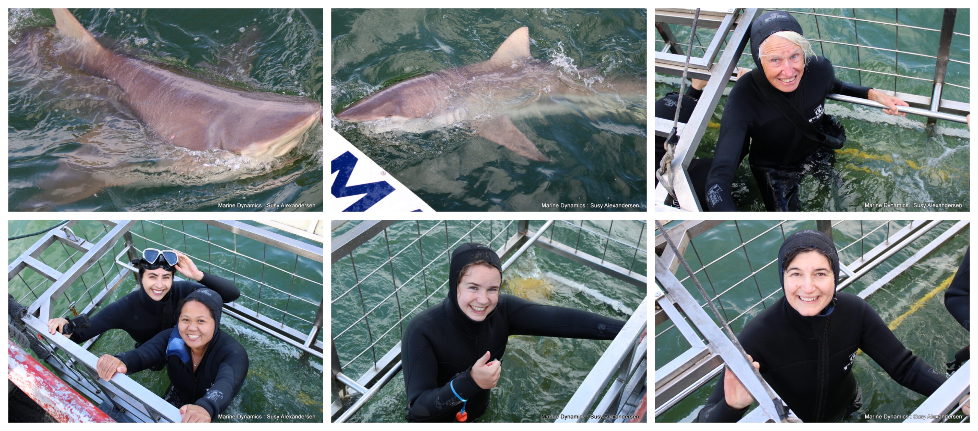 Summary: Finally, we faced the swells and headed out to sea with two trips and excited guests ready to see some sharks! Not long after we anchored our first Bronze whaler sharks sighting appeared. Visibility was limited today but the sharks were amazing and coming close to all divers in the cage, offering an up close experience. A Cape fur seal joined the sightings list, actively predating on a silverfish species and showing off another great species in our water. Thanks to all divers for joining us today!