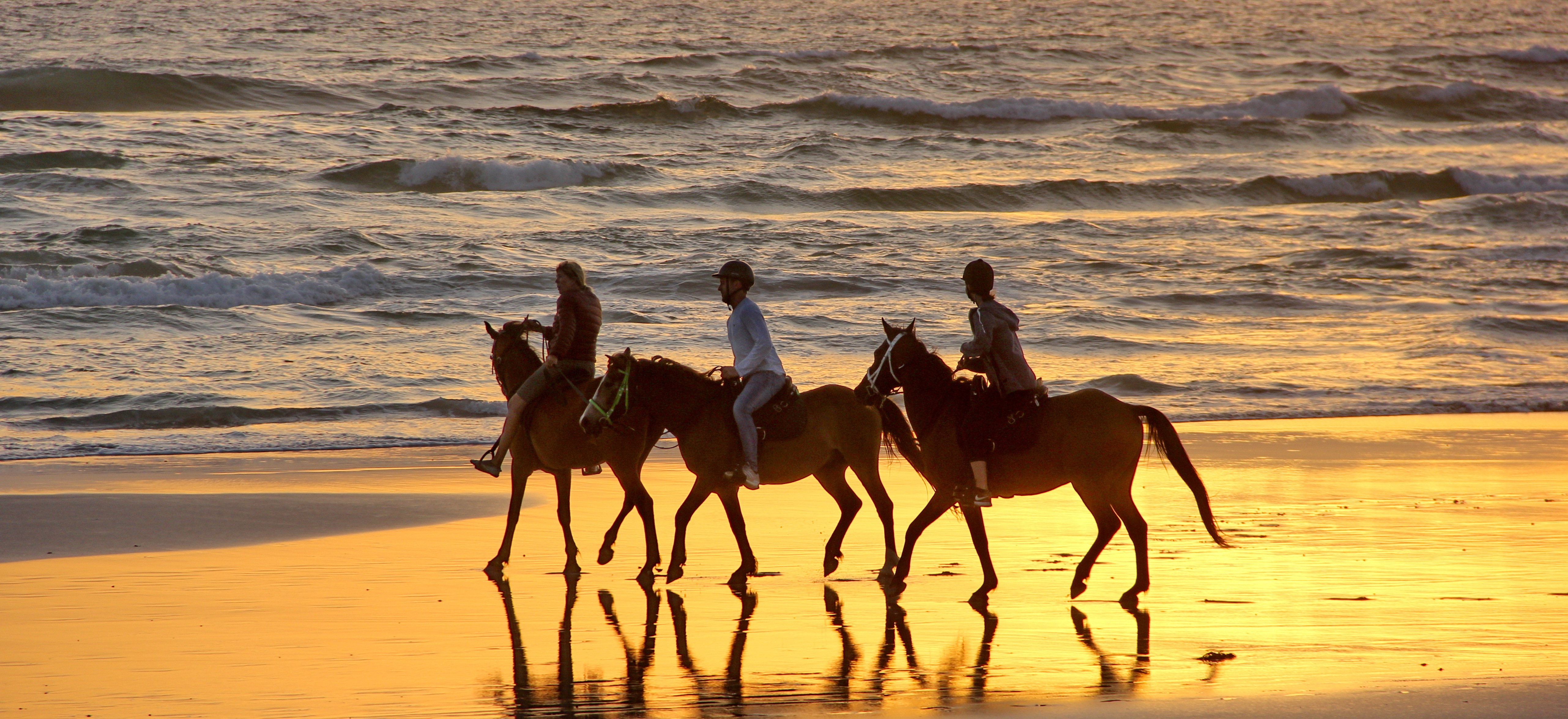 Trails are suitable for all levels of riders, and novices are very welcome and encouraged to experience a beach ride with a possible swim in the ocean, if weather permits. With our horses in mind, a weight limit of 95 kg applies.