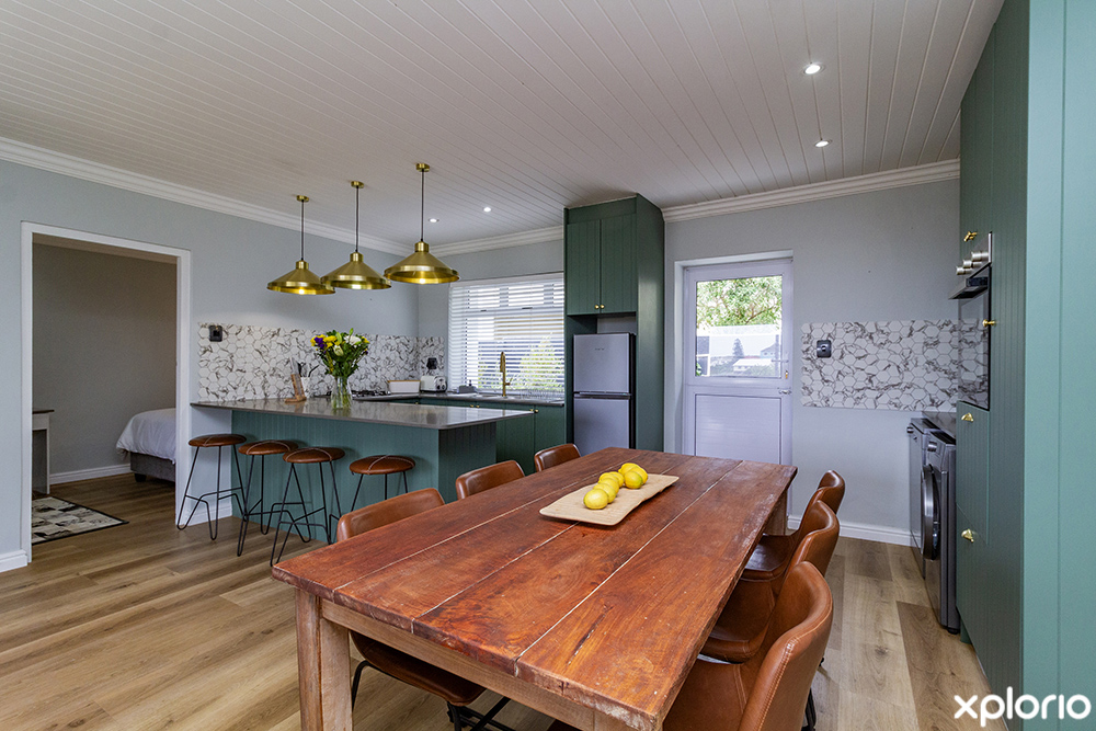 Stylishly decorated, the home’s open-plan living area features a fully fitted kitchen, dining arrangement and a lounge perfect for entertaining and relaxation.