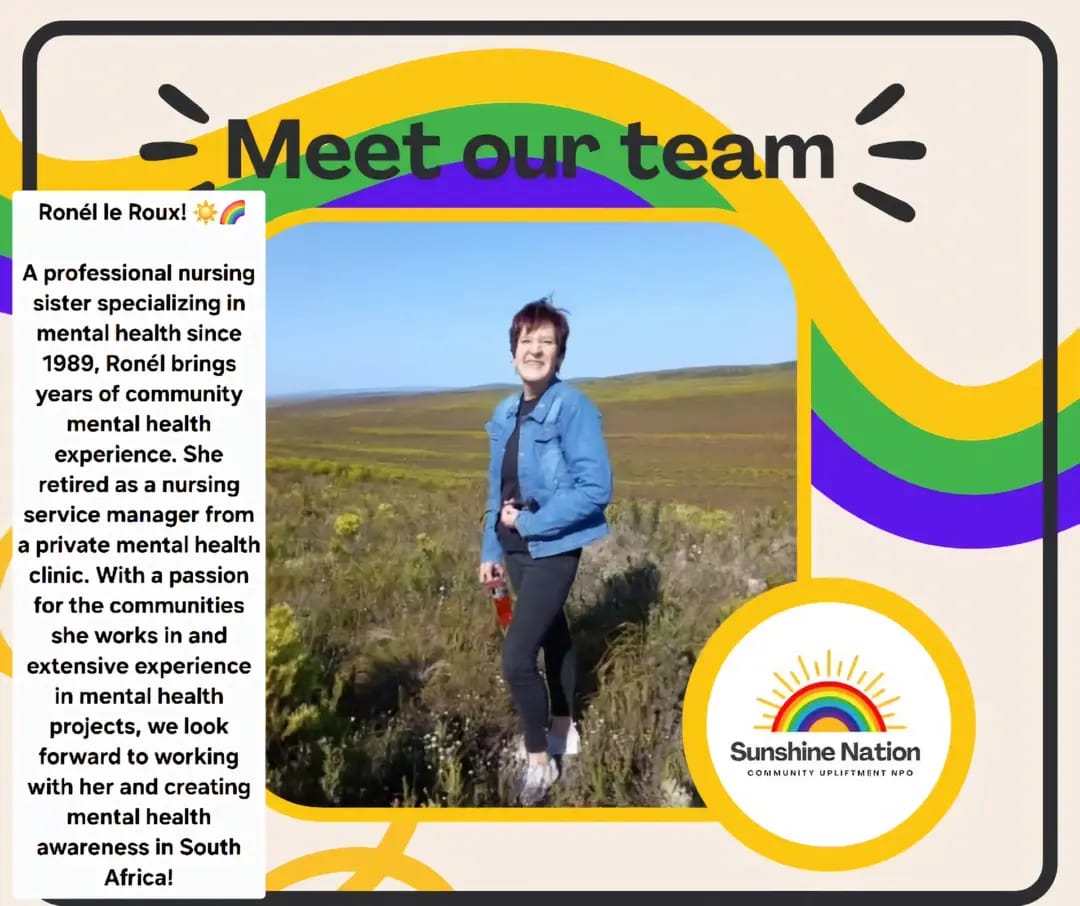 Sunshine Nation has a community WhatsApp support group for matters relating to HIV, TB, domestic violence, substance abuse, mental health, early childhood development, elderly assistance and agricultural development.