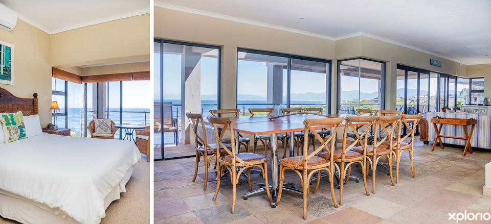 The Gansbaai Room is the only bedroom on the second floor, offering a private balcony with stunning ocean views.