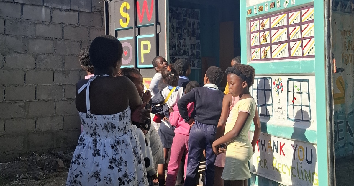 A total of 150 children arrived with bags, trolleys, and wheelbarrows packed full of plastics and glass. After swapping their points for items they chose, each child enjoyed a cup of healthy vegetable soup before heading home - ready to return again next week.