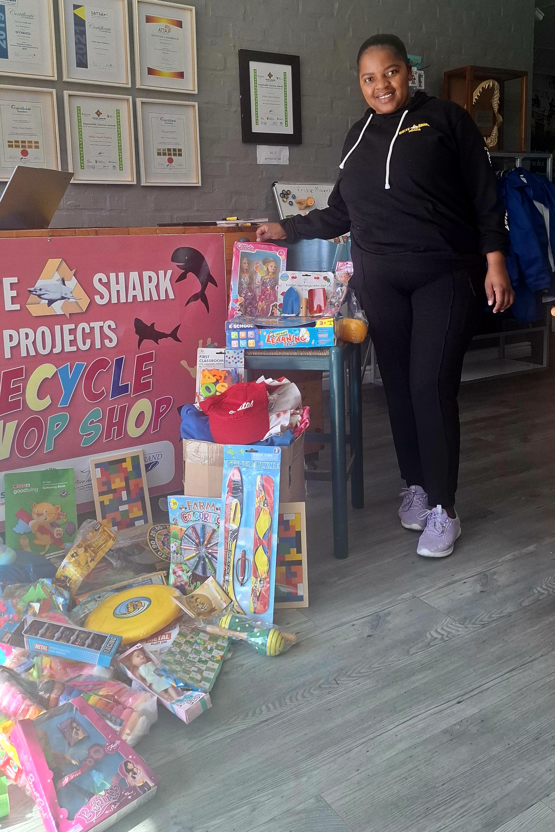 • Rene Mouton from the Gansbaai Lions Club dropped by our lodge with a wonderful load of toys.