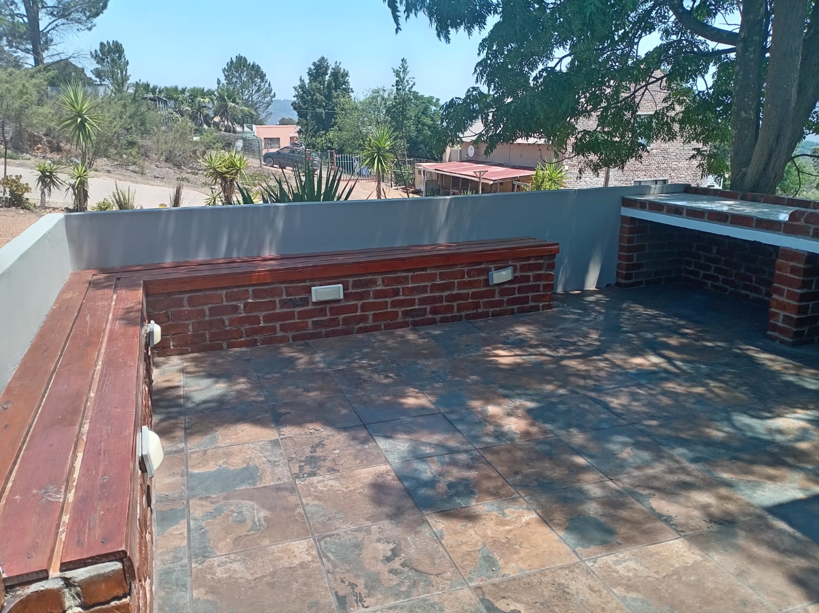 • Private garden with a covered seating area