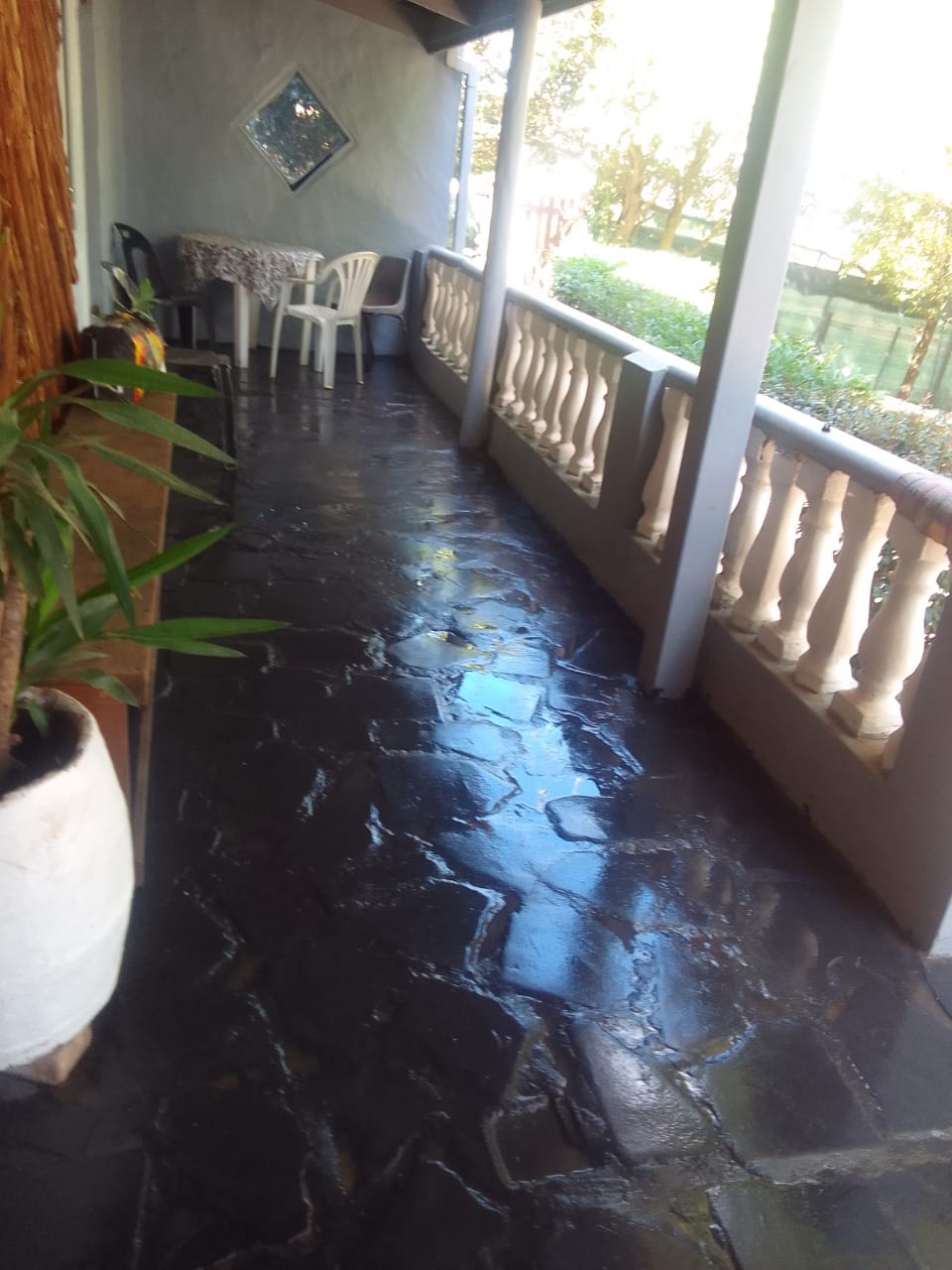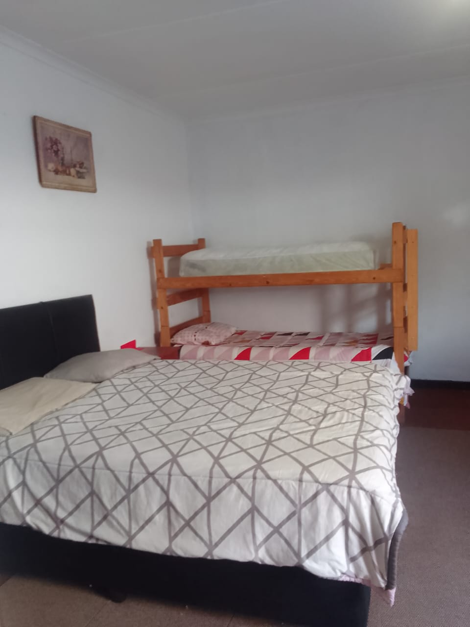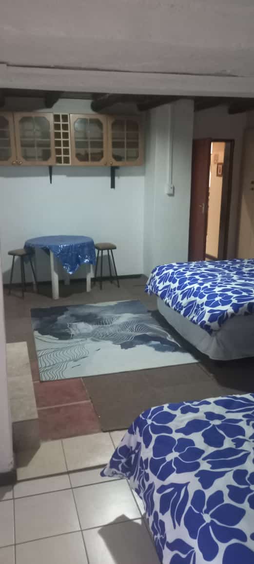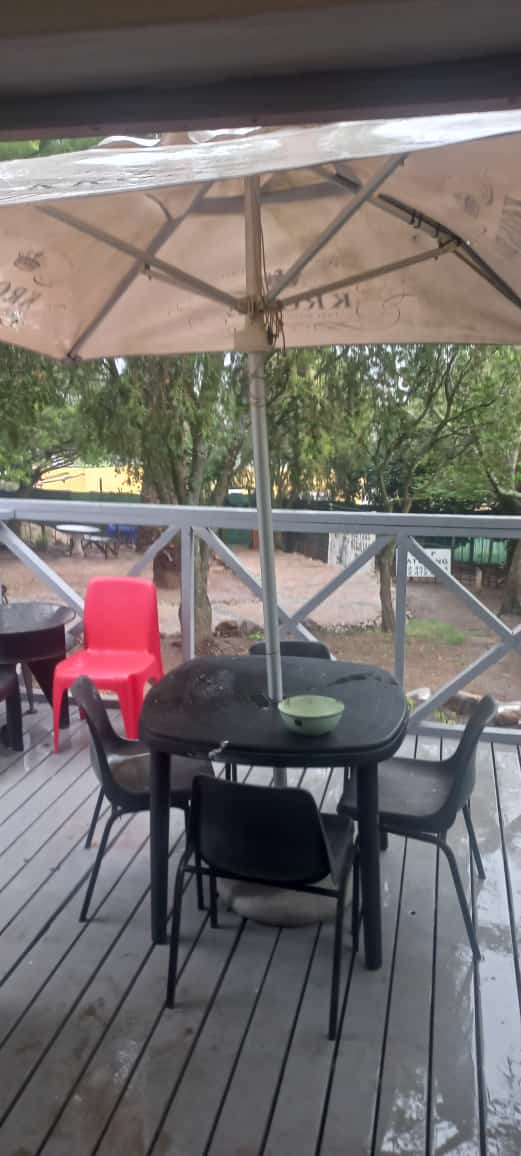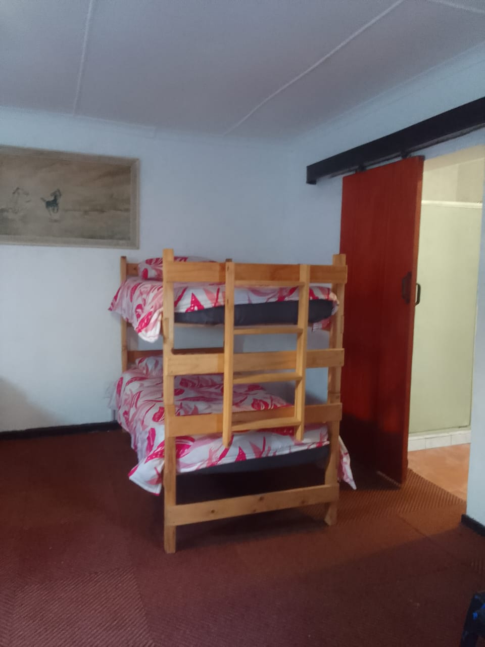 A spacious family room featuring 2 queen-size beds and 1 single bed (sleeps 5). This room includes an en-suite bathroom with a shower, basin, and toilet. It also boasts a private braai and sitting area under a covered roof, offering panoramic views of the surrounding nature. Approx. 25m² in size.