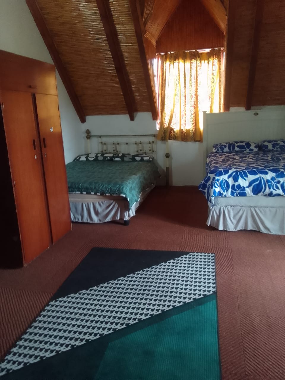 Furnished with 2 double beds and 1 single bed (sleeps 5), this room opens onto a balcony with breathtaking mountain views. It shares a bathroom with Bedroom 1 and is connected via a charming wooden floor walkway.