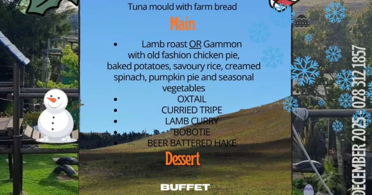 Kersfees is ’n tyd van saamwees, dankbaarheid en natuurlik heerlike kos. Hierdie feesseisoen nooi ons jou uit om saam met ons te vier en ’n smaaklike Kersfeesbuffet te geniet, gevul met trooskos en geliefde plaaslike gunstelinge, alles in ’n pragtige plattelandse omgewing.