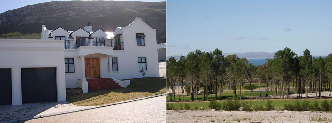 Situated in a security golf course development, Five on Fernkloof Estate, is a double storey house with beautiful views of the Klein River Mountains and Hermanus Golf Course.