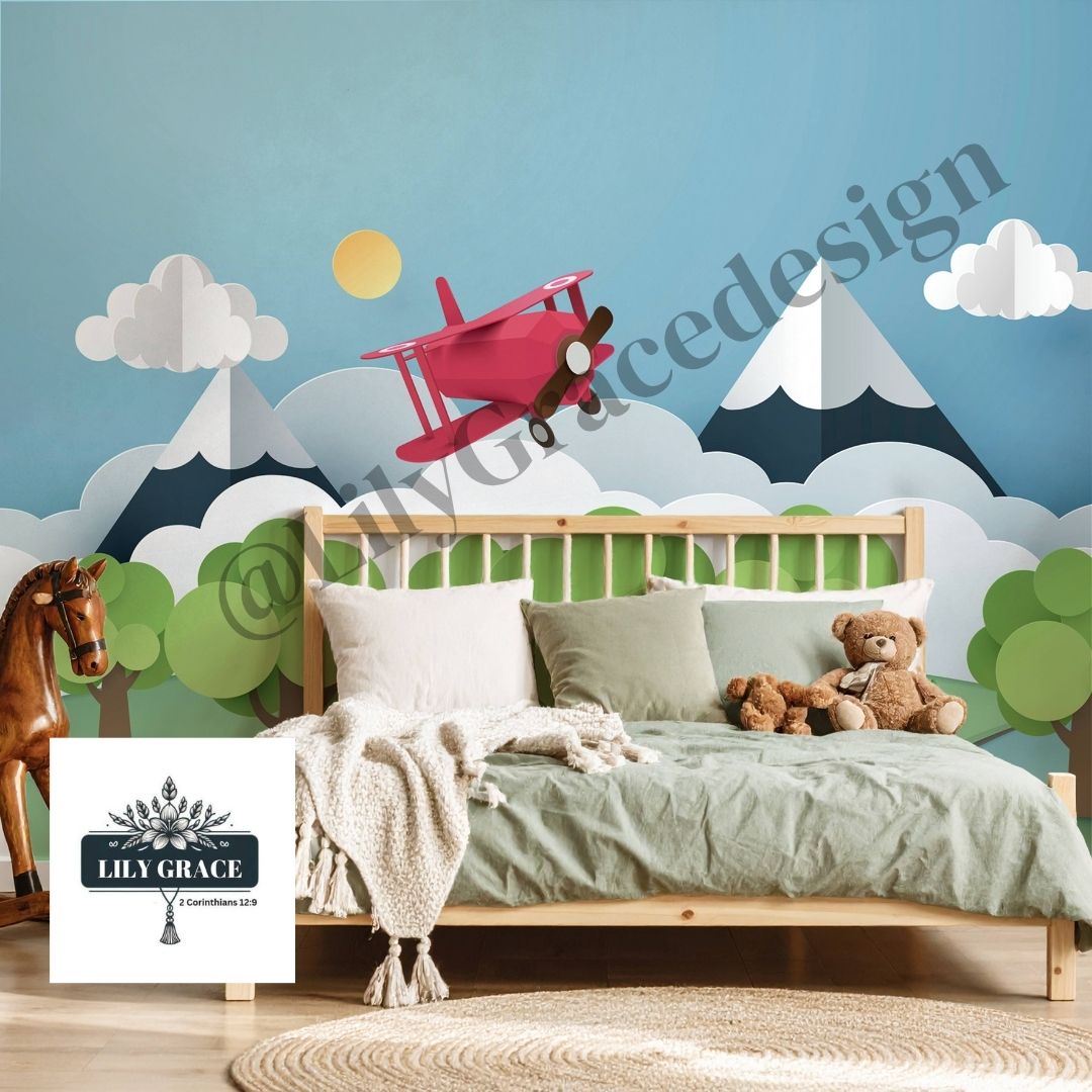 A playful mix of trains and transport, designed with soft colours and clean lines for modern boys' rooms. This mural adds interest without chaos - ideal behind a bed, desk, or along one full wall. Printed in South Africa on durable wallpaper.