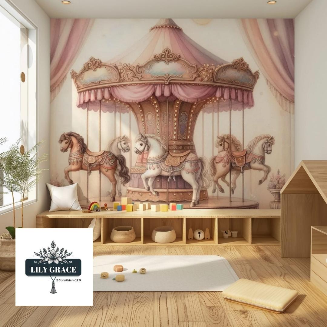 3. Pink Pony Parade - Vintage Kids Wallpaper Mural
