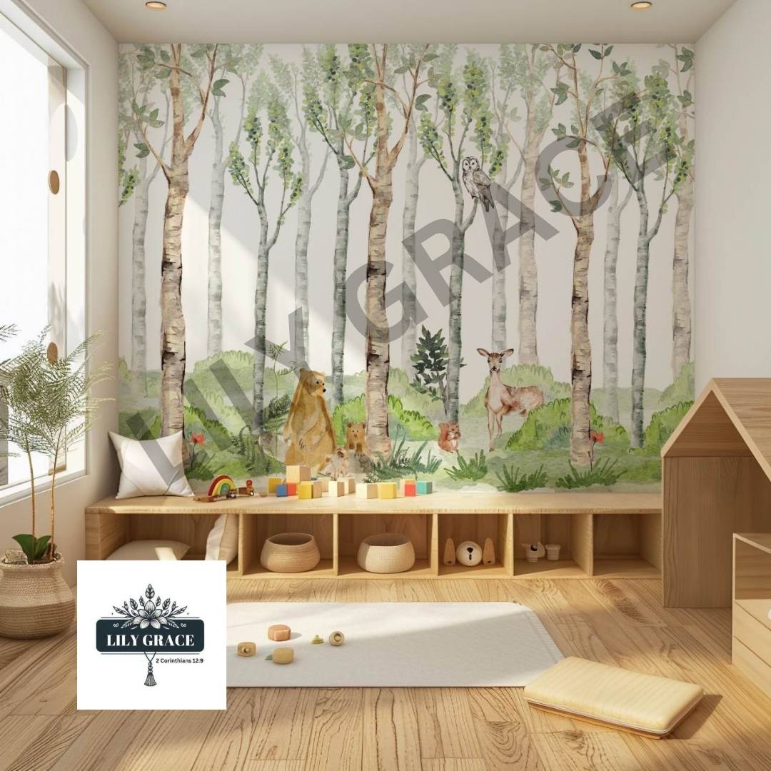 Soft forest tones and hand-drawn detail make this a calming choice for nurseries or toddler rooms. Printed locally in South Africa, it’s available in two durable finishes that clean easily and won’t fade. Perfect for parents who want long-lasting wallpaper for children's bedroom walls without locking into a short-term theme.