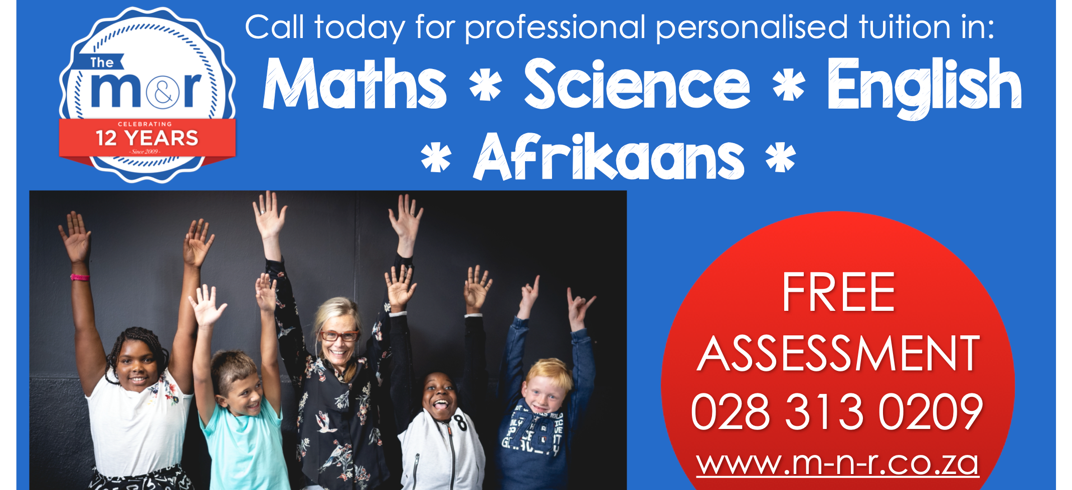 At M&R we offer professional personalised tuition in Maths, Science, English and Afrikaans! Get a head start by calling today to schedule a FREE ASSESSMENT: 028 313 0209/083 925 7217