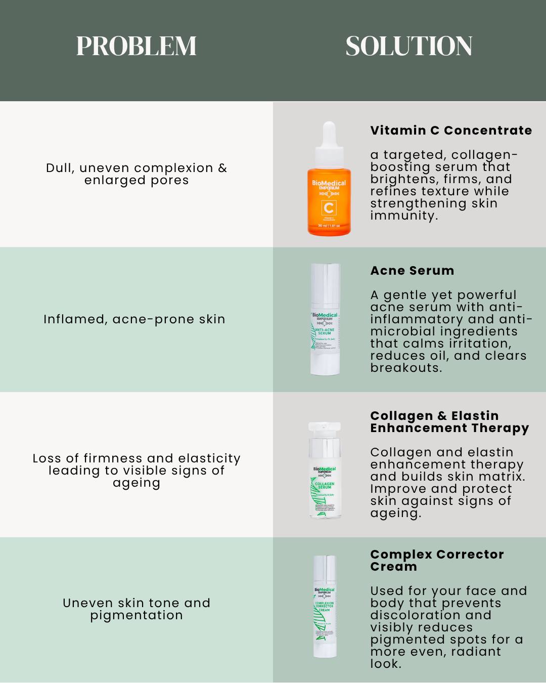 Every concern has a root cause. Whether it’s dullness, pigmentation, breakouts, or loss of firmness, we offer formulas that go deeper than surface results, restoring your skin’s strength from within.