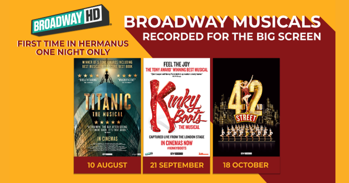 Catch three iconic Broadway musicals recorded live and shown in cinema quality right here in Hermanus, a first for our town!