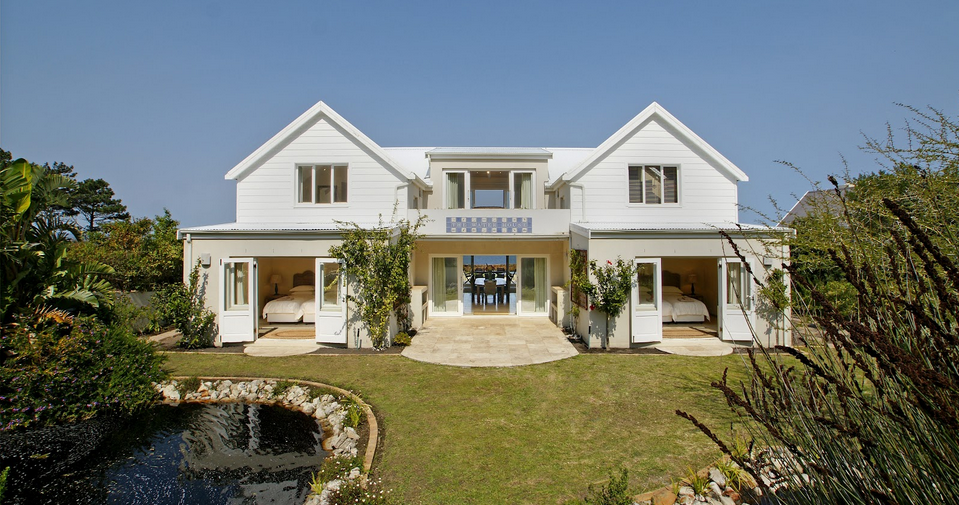 Situated 6km East of Hermanus on a private estate. Positioned in between mountains and a lagoon, the property gives the feeling of water and life flowing down the mountains, through the gardens and into the house.