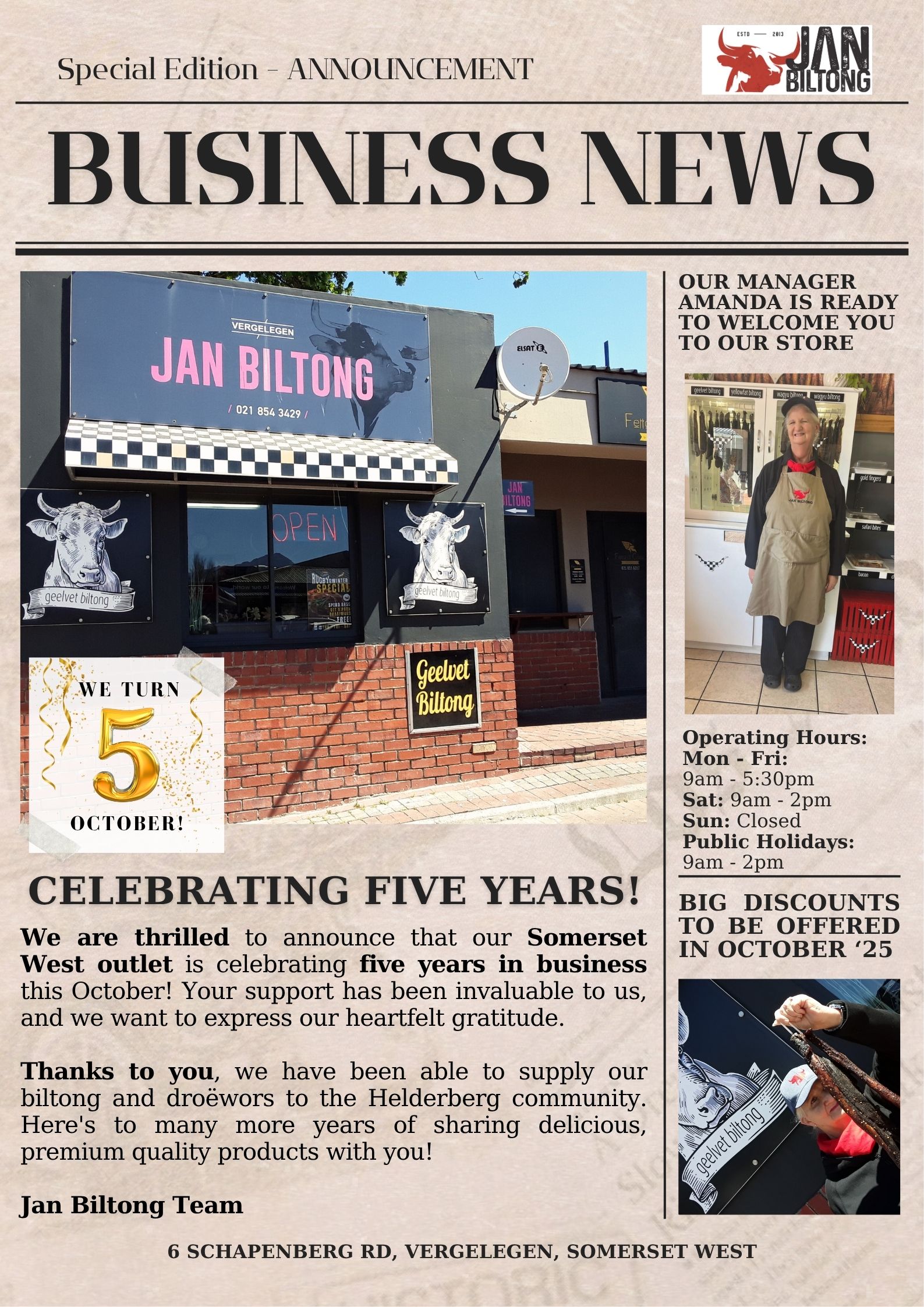 Jan Biltong Somerset West Celebrates 5th Anniversary