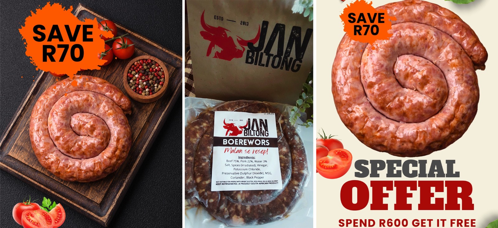 Spend R600 and get a FREE pack of our famous Jan Biltong Boerewors.