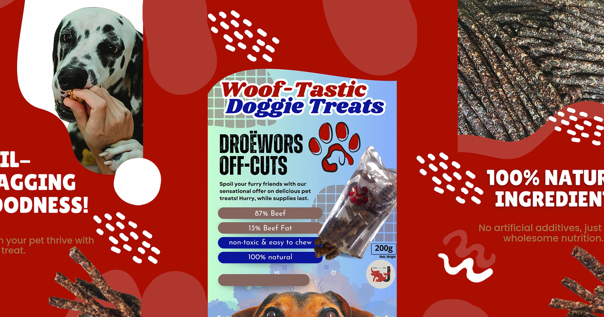 Spoil your furry friend with our 100% natural Droëwors off-cut treats made from 87% beef and 13% beef fat.