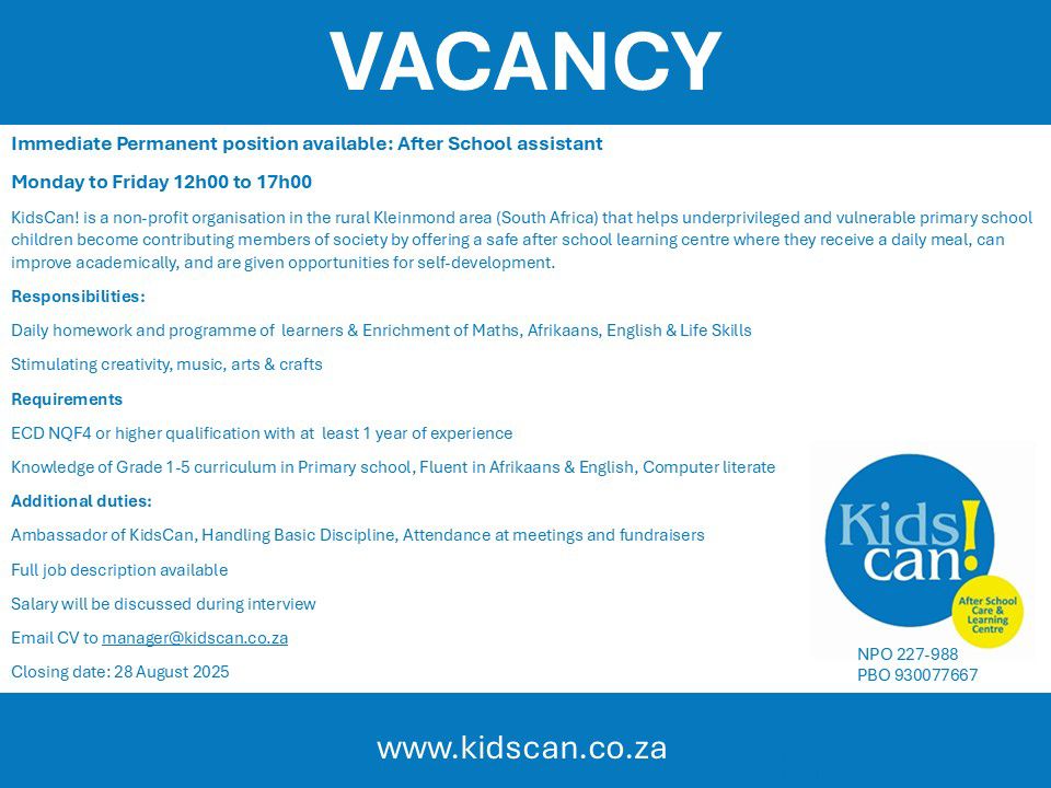 KidsCan! is a non-profit organisation in the rural Kleinmond area (South Africa)...