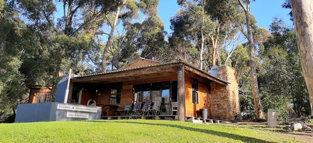 The Cabins at NJR Farm consist of three rustic cabins. Cabin 1 and 2 are the sleeping quarters, and each has a shower ensuite. Cabin 3 houses the open-plan kitchen and lounge as well as a patio with magnificent views of the countryside.