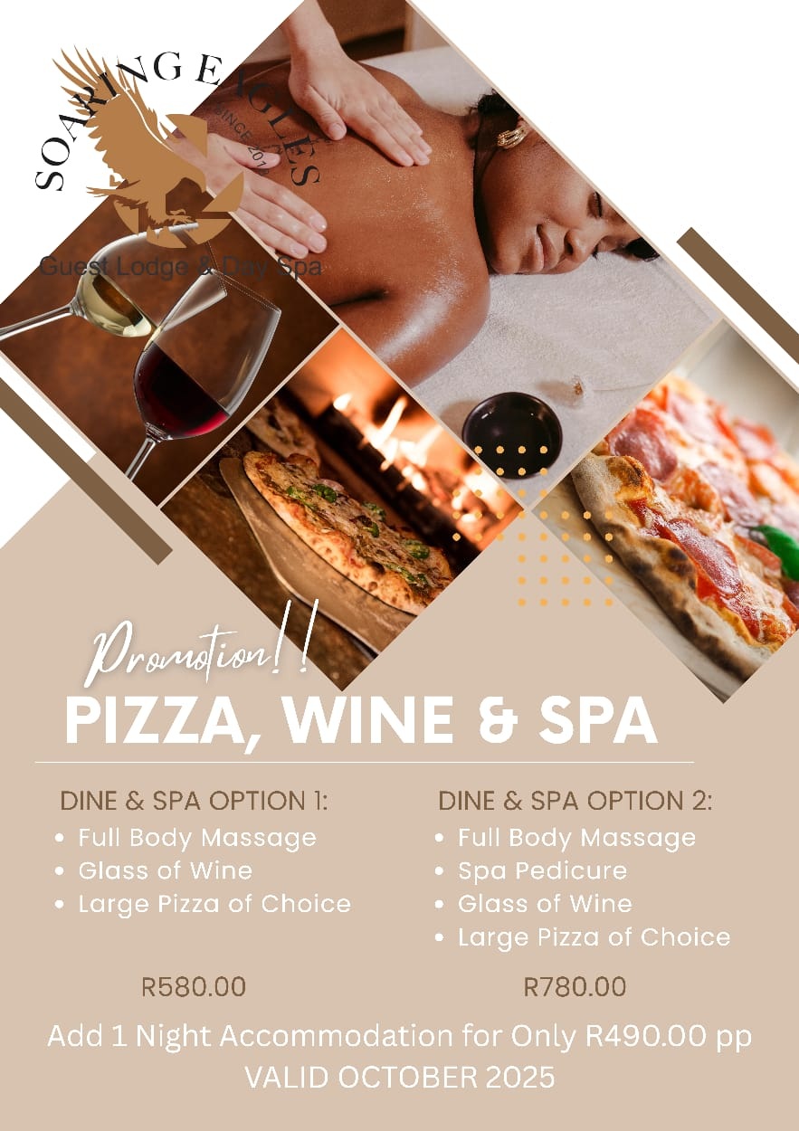 This October, treat yourself to the ultimate Pizza, Wine and Spa Experience at Soaring Eagles Guest Lodge & Day Spa.