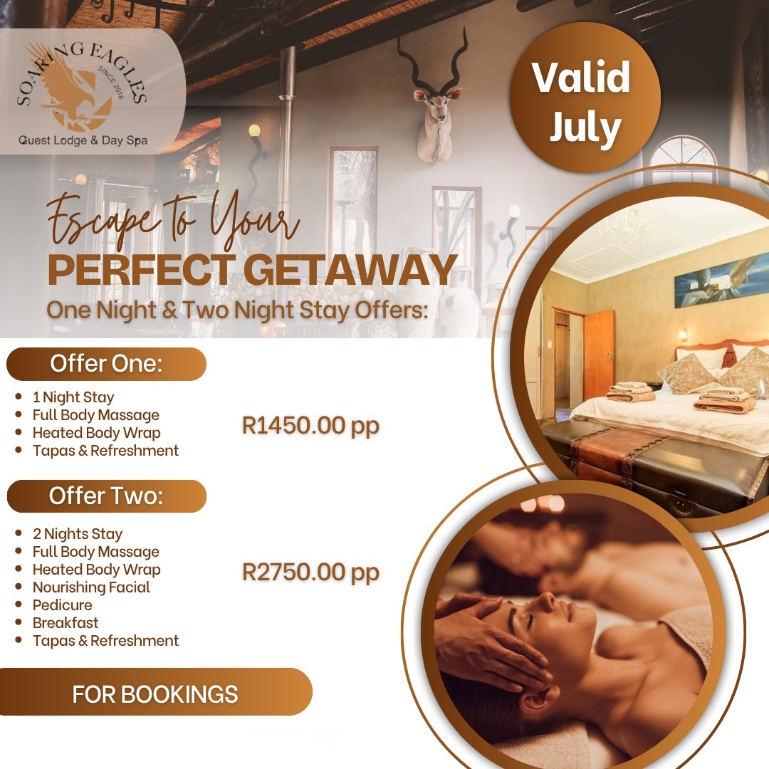 Treat yourself to the rest and relaxation you deserve at Soaring Eagles Guest Lodge & Day Spa with one of these limited-time offers: