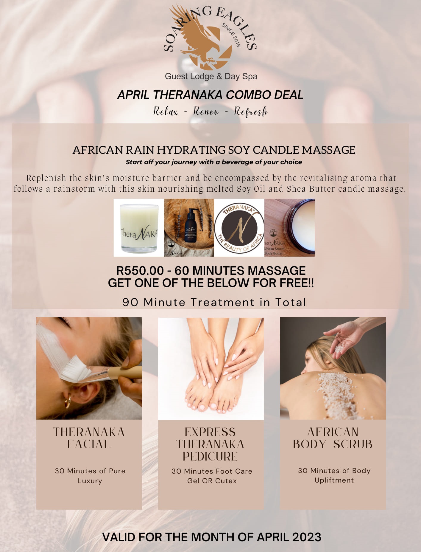 For more information or to book, contact Soaring Eagles Guest Lodge and Day Spa.