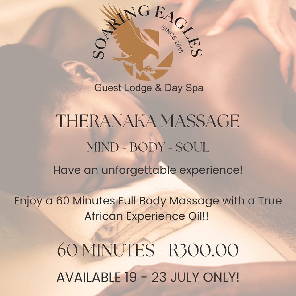 For more information or to book, contact Soaring Eagles Guest Lodge and Day Spa.