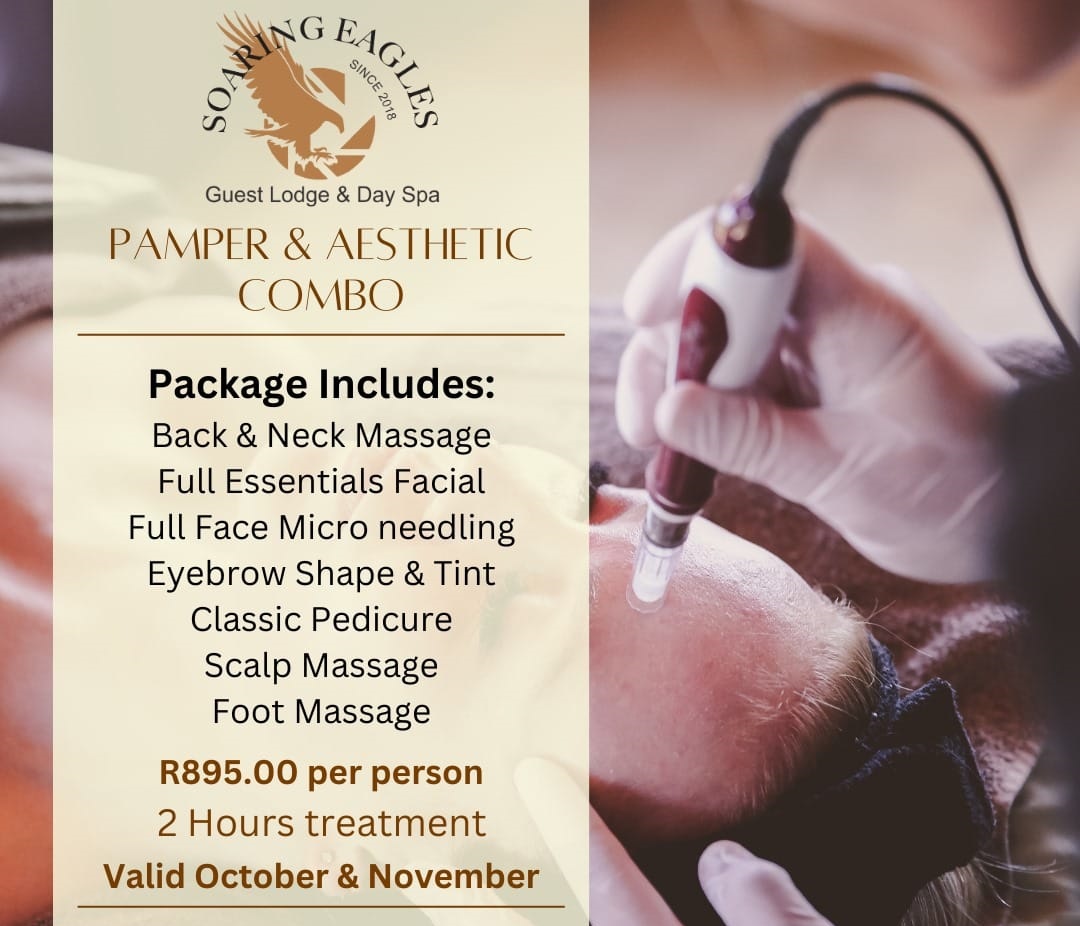 For more information or to book, contact Soaring Eagles Guest Lodge & Day Spa.