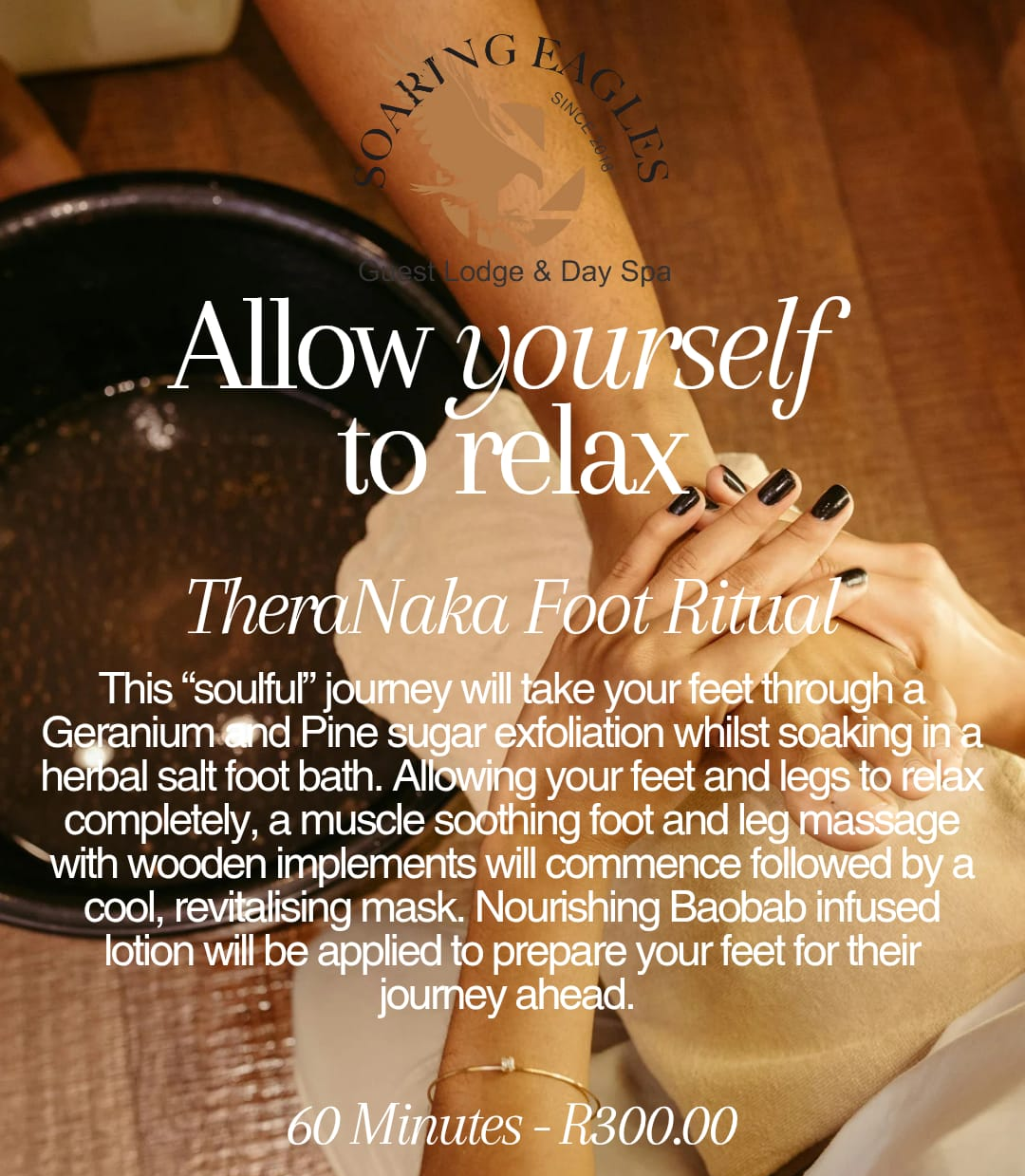Escape into a world of serenity at Soaring Eagles Guest Lodge & Day Spa, where nature, touch, and tranquillity come together to restore your body and soul.