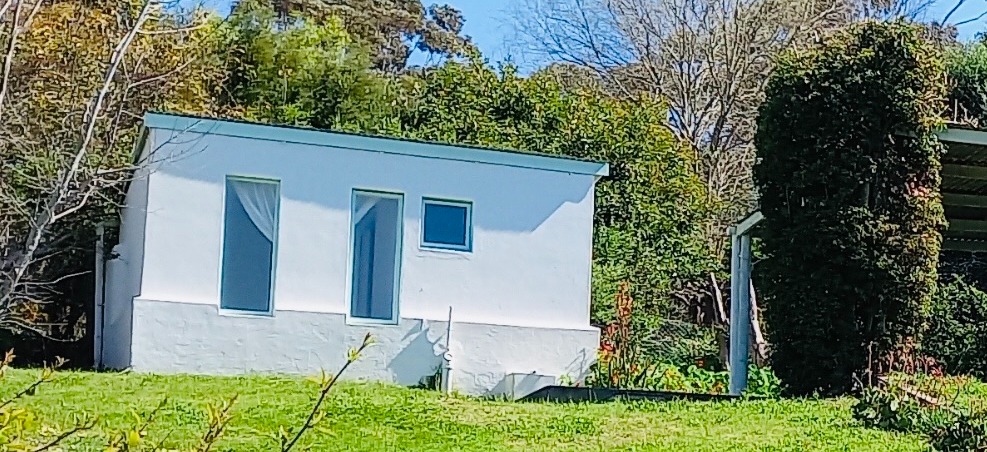 Private property with an outside guest room with a shower en suite. Two single beds, a hanging cupboard with kettle, coffee, sugar, rusks etc. Peaceful, quiet, clean and comfortable. Pets can be discussed.
