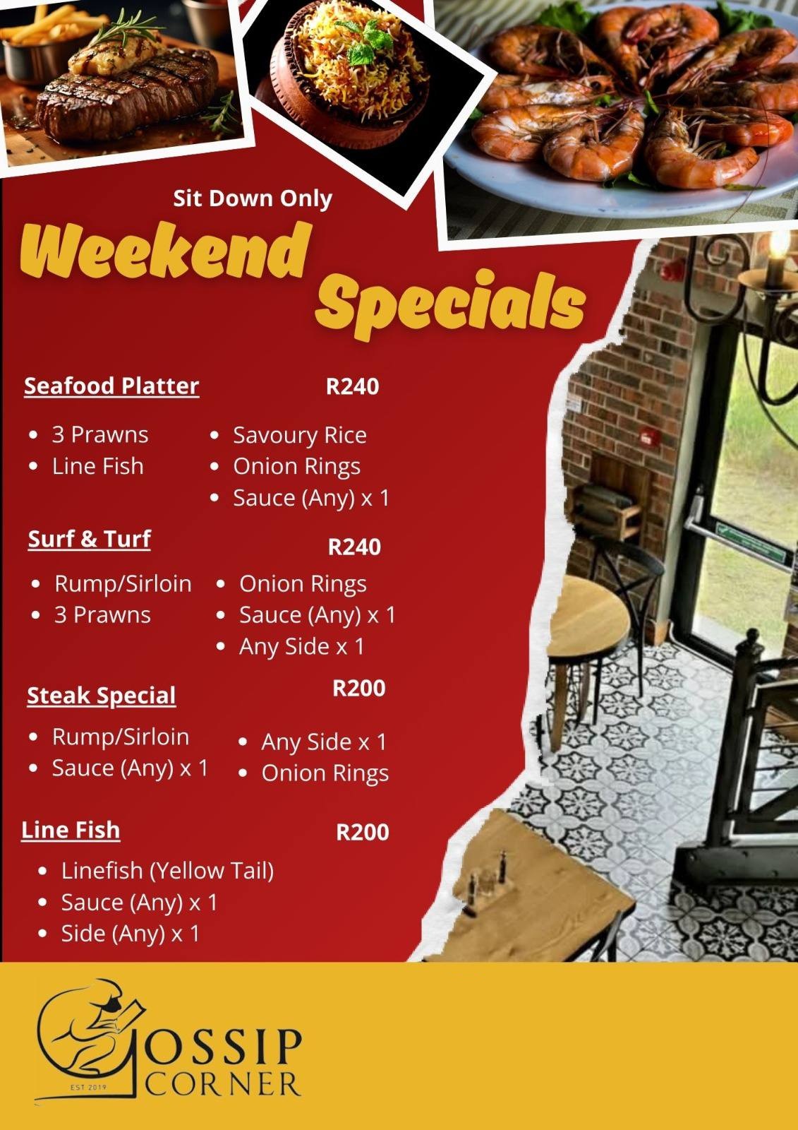 WEEKEND SPECIALS at Gossip Corner!