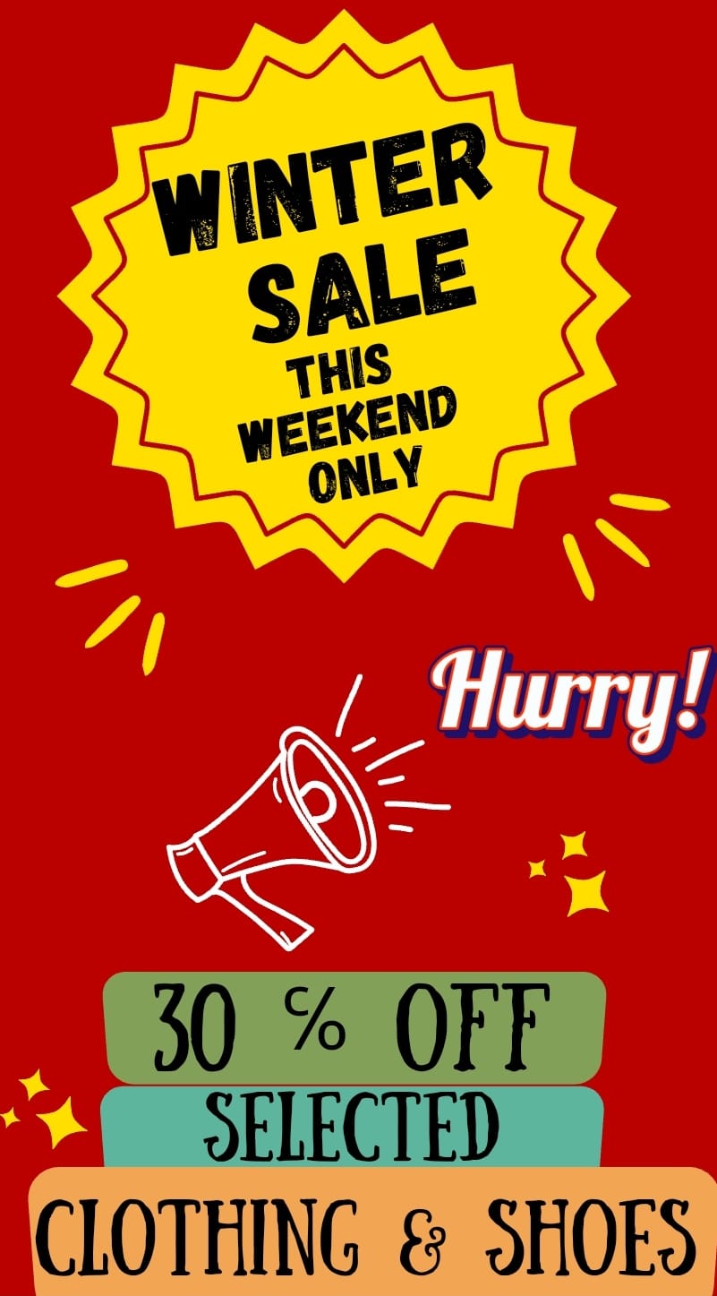 Come and pick your favourites from our shelves with 30% OFF selected clothing and shoes. Don’t miss out on these fantastic deals!