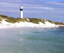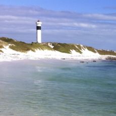 An unmanned lighthouse at Cape Hangklip indicating the entrance to False Bay.