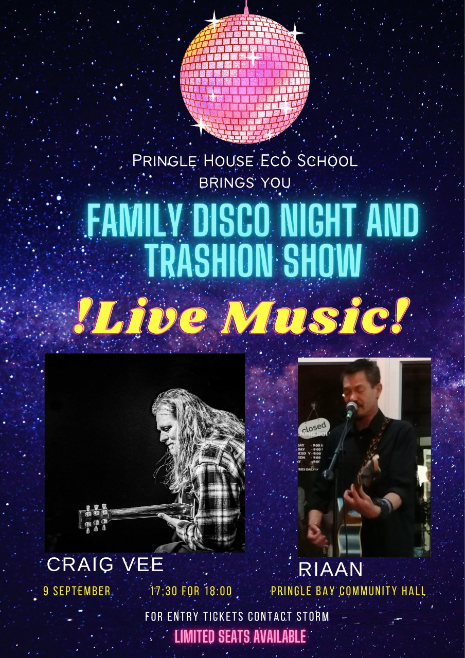 Contact Pringle House Eco School for entry tickets to the disco and for trashion entries.
