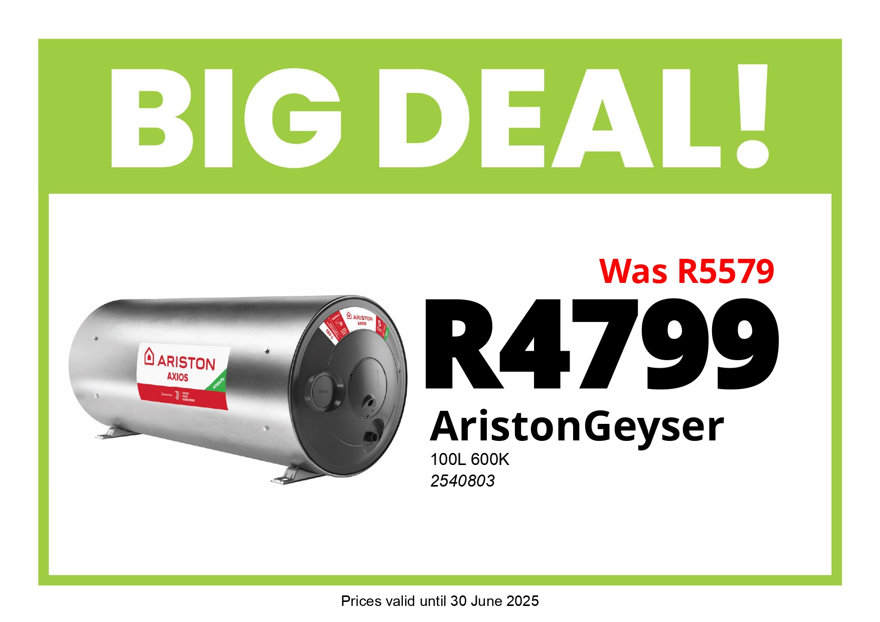 • Ariston Geyser 100L 600K - R4799 (Was R5579)