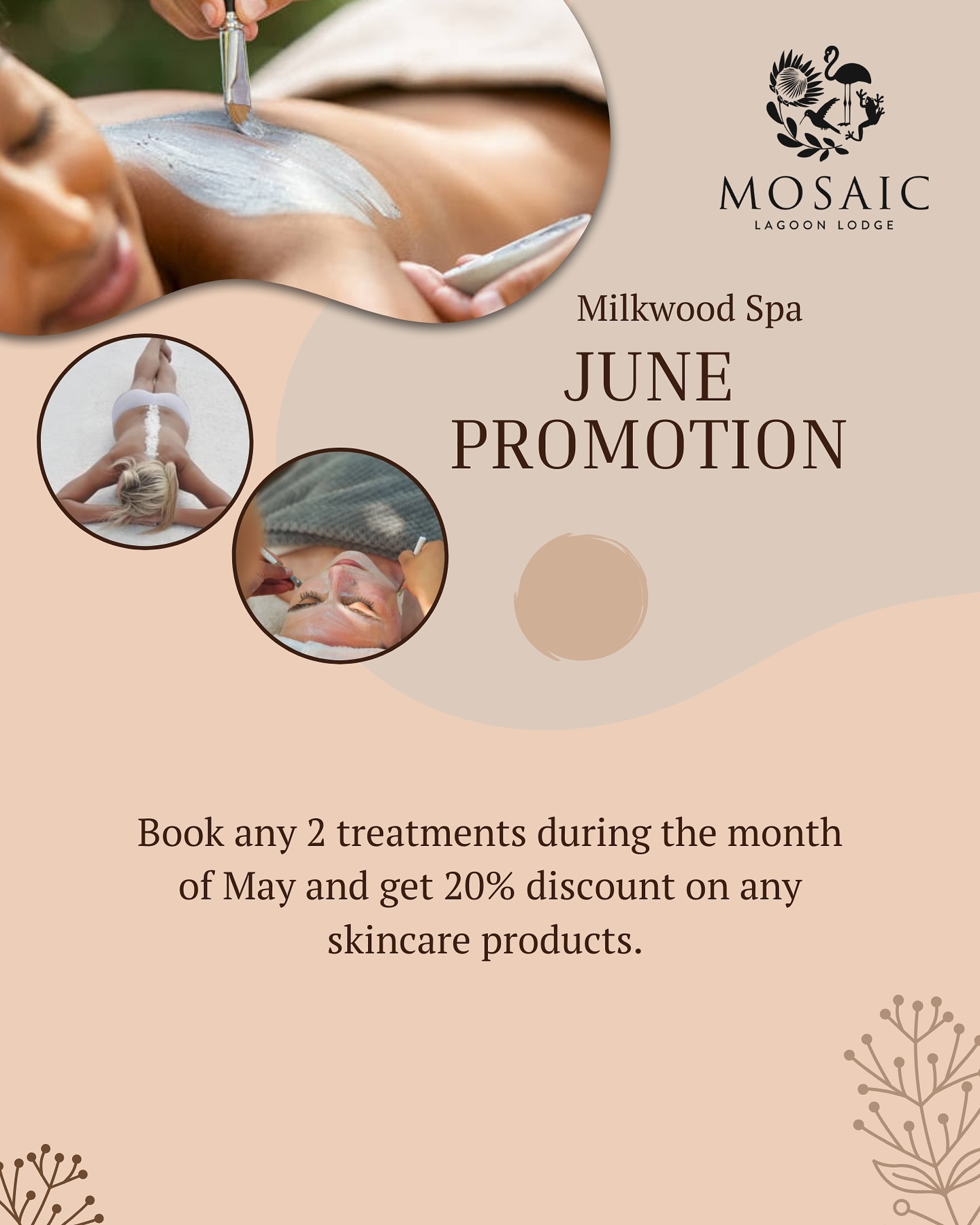 Book any 2 treatments during the month of June and get 20% off any skincare products!