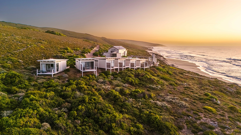 “Lekkerwater perches above the pearly sands and dolphin-studded waves of De Hoop Nature Reserve. Whales are the big draw, but throw in spotless wild beaches, fynbos-swathed hills, delicious food and top-notch wine and you’ve got one of the country’s best coastal retreats.” Time Magazine